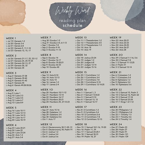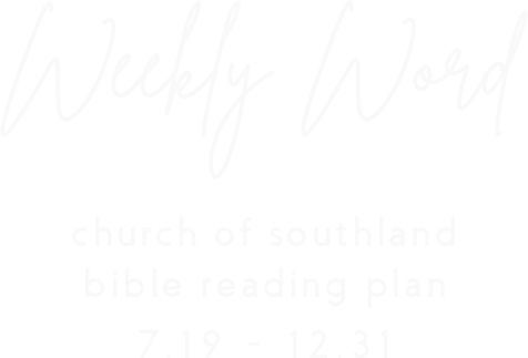 Have you ever wanted to learn how to see the Bible as a continuous interconnected story? Starting this Monday July 19th, join with us as we read through key chapters and books of the Bible to broaden our understanding of the overarching narrative of Scripture. The "Weekly Word" Bible reading plan will be from Monday - Friday every week until the end of the year.